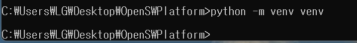 ๋ช ๋ น์ด๋ฅผ ์ ๋ ฅํ๊ณ ์ํฐ๋ฅผ ์น๋ฉด ๊ณง๋ฐ๋ก cmd์ฐฝ์ด ๊นจ๋ํด์ง๋ฉฐ (venv) ๋ฐ์ผ๋ก ๋น ์ ธ๋์จ๋ค.