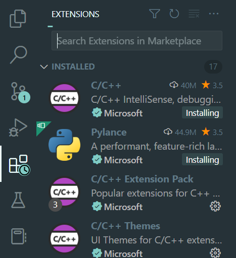 VScode ์ฐฝ์ ์ด๊ณ ์ข์ธก ์๋จ extensions ํญ์ ๋ค์ด๊ฐ python๊ณผ flask-snippets ๋ฅผ ๊ฒ์ํด ์ค์นํด์ค๋ค.