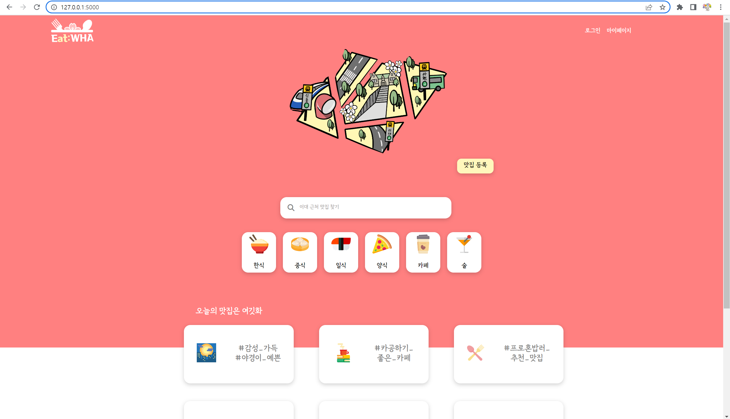 ์ ๋์๋ค๋ฉด http://127.0.0.1:5000/ ๋ฐฉ๋ฌธ ์ ์น ํ์ด์ง๊ฐ ์ ์์ ์ผ๋ก ๋ณด์ผ ๊ฒ์ด๋ค!